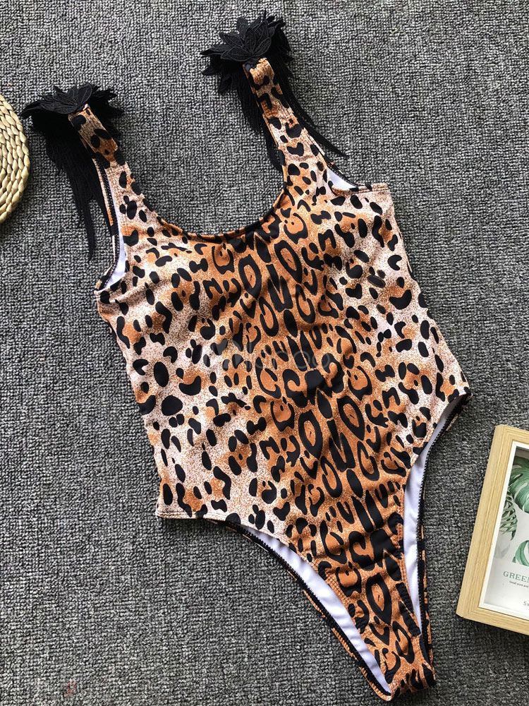 ワンピース水着 21 ヒョウ柄 エンジェルウィング アップリケ バックレスビーチ水着 Milanoo Jp